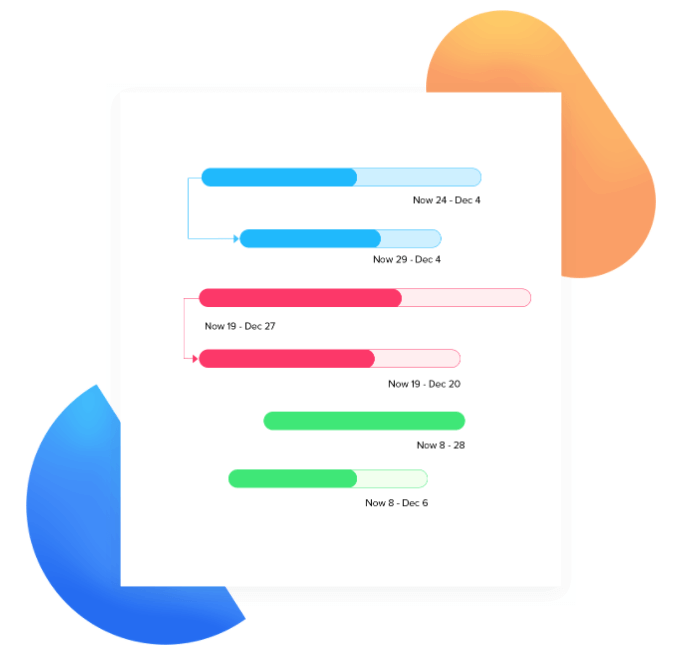 Utilisez des diagrammes de Gantt pour créer votre plan de projet et suivre votre planning de tâches. Zoho Projects vous tient informé de vos tâches critiques et de leurs dépendances, et vous indique immédiatement tout écart entre vos progrès planifiés et réels.