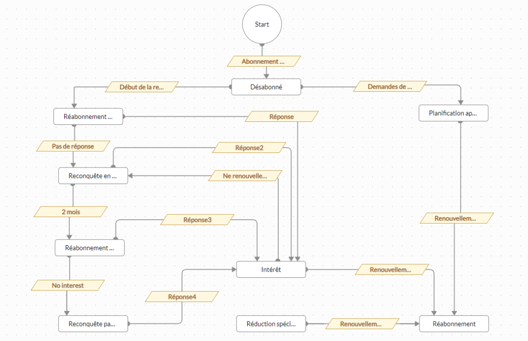 CommandCenter vous permet d'automatiser tout ce parcours, en réduisant les interventions manuelles à chaque étape. Une fois les actions clairement définies, les étapes suivantes se produiront automatiquement.Par exemple, si le prospect a des articles dans son panier, un e-mail peut être envoyé automatiquement tous les trois jours pour lui rappeler d'acheter les articles. L'automatisation des processus métier permet à l'organisation :